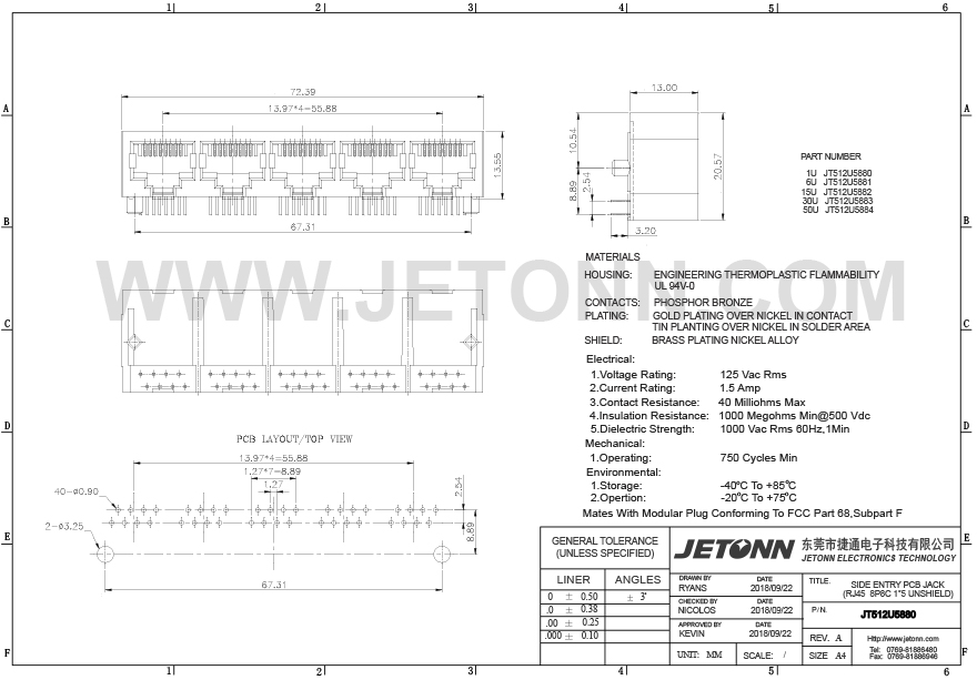東莞市捷通電子科技有限公司 成立于2018年,是一家專業(yè)網(wǎng)絡(luò)通訊連接器及防水連接器制造商,主要從事連接器的研發(fā)、設(shè)計(jì)、生產(chǎn)、銷售以及模具開發(fā)等服務(wù)!