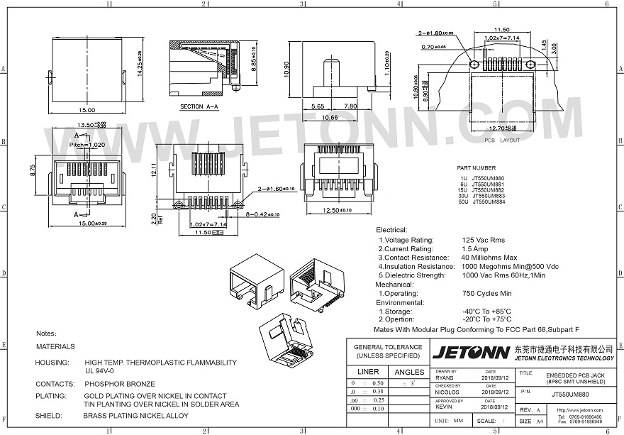東莞市捷通電子科技有限公司 成立于2018年,是一家專業(yè)網(wǎng)絡(luò)通訊連接器及防水連接器制造商,主要從事連接器的研發(fā)、設(shè)計(jì)、生產(chǎn)、銷售以及模具開發(fā)等服務(wù)!