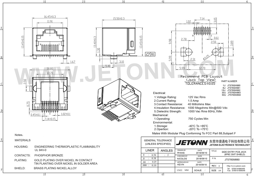 東莞市捷通電子科技有限公司 成立于2018年,是一家專業網絡通訊連接器及防水連接器制造商,主要從事連接器的研發、設計、生產、銷售以及模具開發等服務!