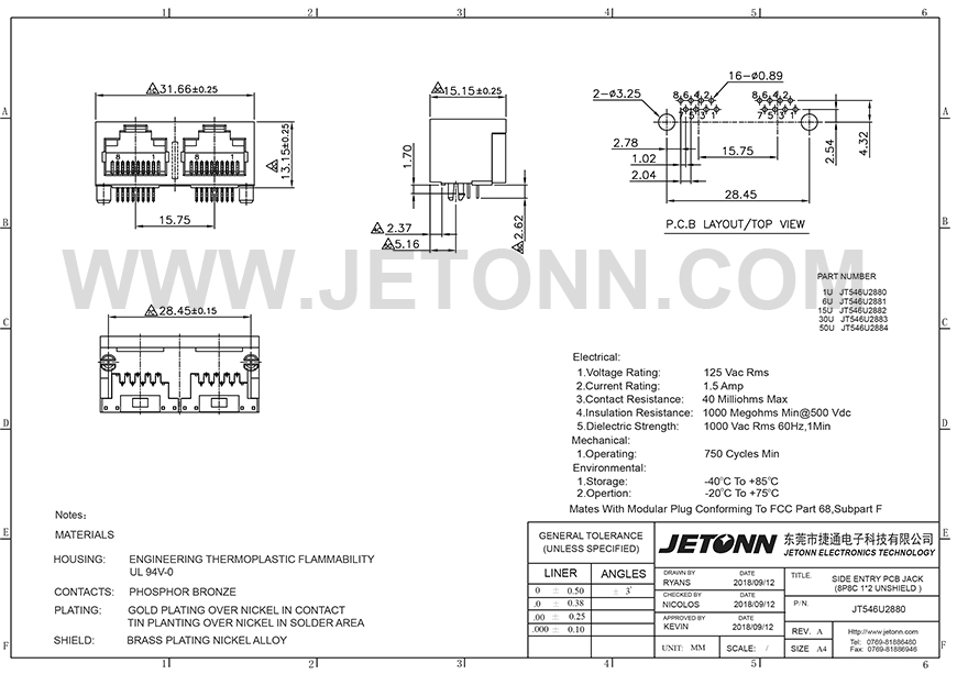 產品說明:本公司提供品質高的RJ11、RJ12電話插接件、RJ45網絡插接件,耐環(huán)境RJ45防水連接器,防水電連接器及其它精密連接器,產品應用于網絡通訊(電腦主板,網絡交換機,路由器,電信設備)、惡劣環(huán)境下數(shù)據(jù)傳輸與控制及電源信號傳輸與控制(視頻控制,戶外LED顯示屏、機器控制、工業(yè)程序控制等)