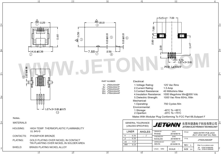 東莞市捷通電子科技有限公司主營RJ11貼片插座帶L平貼腳等其他它精密連接器,我司擁有專業的生產設備和技術型人才,我們堅持匠心品質,持續改進,為客戶提供滿意的產品,歡迎廣大客戶前來咨詢:0769-81886480