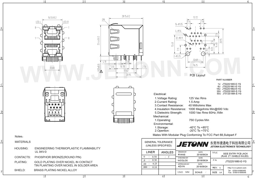 東莞市捷通電子科技有限公司主營雙層RJ45帶燈插座等其他它精密連接器,我司擁有專業的生產設備和技術型人才,我們堅持匠心品質,持續改進,為客戶提供滿意的產品,歡迎廣大客戶前來咨詢:0769-81886480