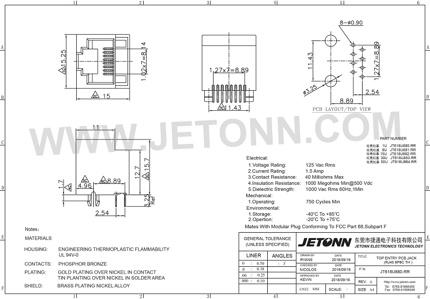 • 東莞市捷通電子科技有限公司 成立于2018年,是一家專業網絡通訊連接器及防水連接器制造商,主要從事連接器的研發、設計、生產、銷售以及模具開發等服務!