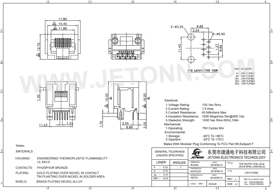 • 東莞市捷通電子科技有限公司 成立于2018年,是一家專業網絡通訊連接器及防水連接器制造商,主要從事連接器的研發、設計、生產、銷售以及模具開發等服務!