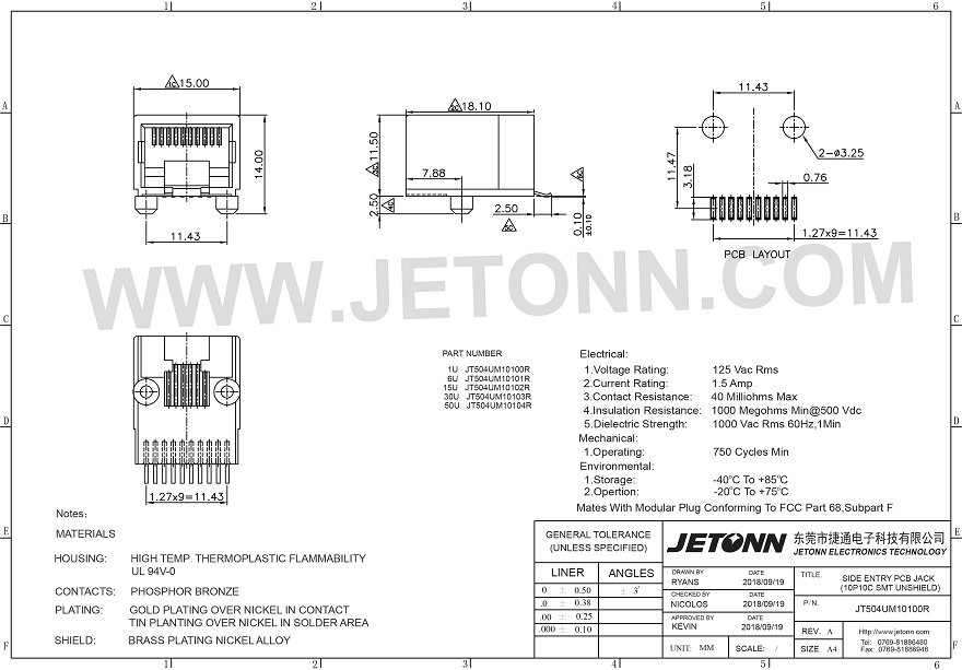 • 東莞市捷通電子科技有限公司 成立于2018年,是一家專業網絡通訊連接器及防水連接器制造商,主要從事連接器的研發、設計、生產、銷售以及模具開發等服務!