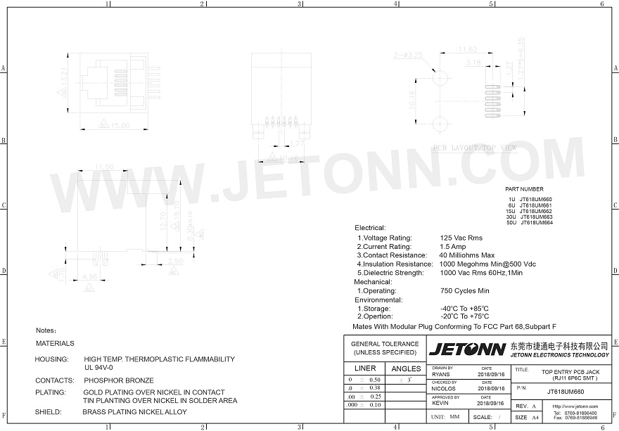 • 東莞市捷通電子科技有限公司 成立于2018年,是一家專業網絡通訊連接器及防水連接器制造商,主要從事連接器的研發、設計、生產、銷售以及模具開發等服務!