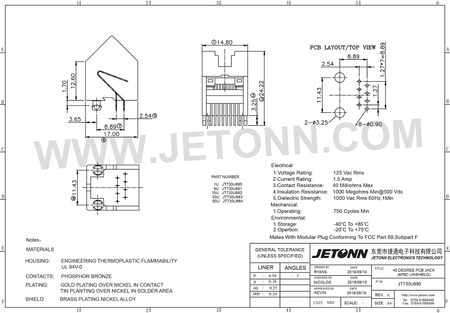 東莞市捷通電子科技有限公司主營RJ45網線接口等其他它精密連接器,我司擁有專業的生產設備和技術型人才,我們堅持匠心品質,持續改進,為客戶提供滿意的產品,歡迎廣大客戶前來咨詢:0769-81886480