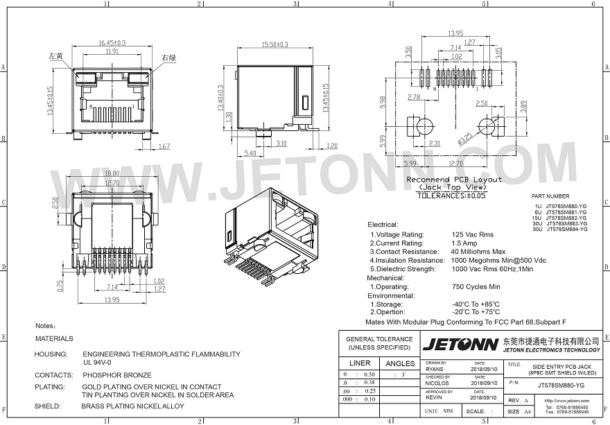 • 東莞市捷通電子科技有限公司 成立于2018年,是一家專業網絡通訊連接器及防水連接器制造商,主要從事連接器的研發、設計、生產、銷售以及模具開發等服務!