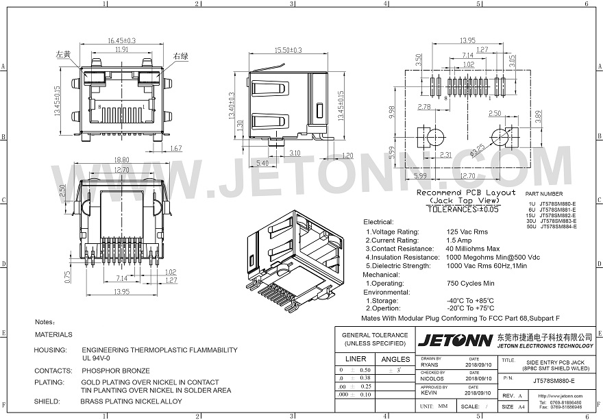東莞市捷通電子科技有限公司主營貼片式RJ45帶LED燈插座等其他它精密連接器,我司擁有專業的生產設備和技術型人才,我們堅持匠心品質,持續改進,為客戶提供滿意的產品,歡迎廣大客戶前來咨詢:0769-81886480