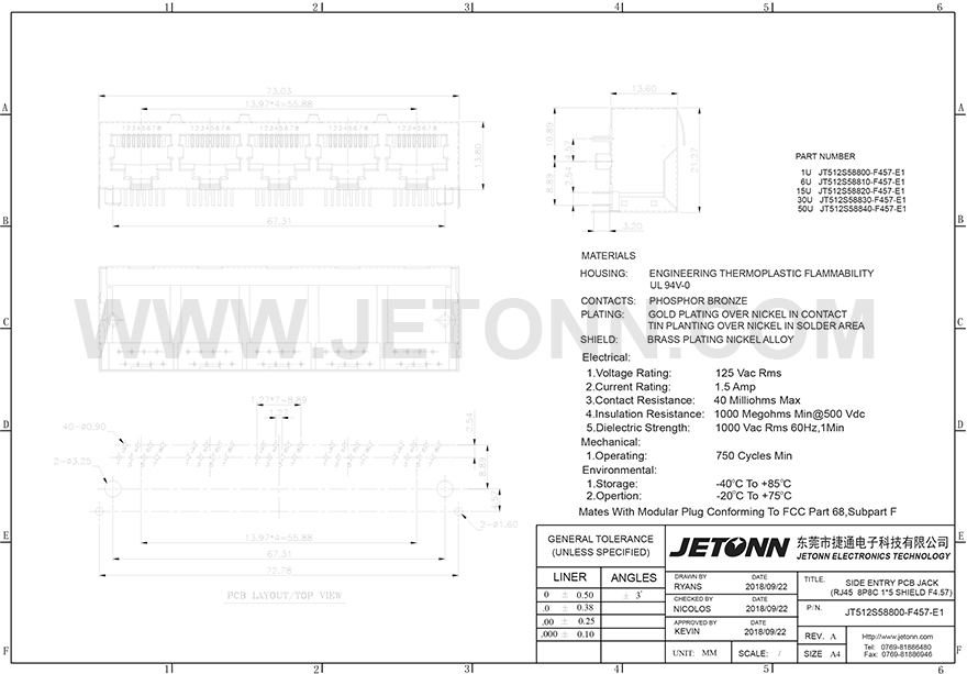 產(chǎn)品說明:本公司提供品質(zhì)高的RJ11、RJ12電話插接件、RJ45網(wǎng)絡(luò)插接件,耐環(huán)境RJ45防水連接器,防水電連接器及其它精密連接器,產(chǎn)品應(yīng)用于網(wǎng)絡(luò)通訊(電腦主板,網(wǎng)絡(luò)交換機(jī),路由器,電信設(shè)備)、惡劣環(huán)境下數(shù)據(jù)傳輸與控制及電源信號傳輸與控制(視頻控制,戶外LED顯示屏、機(jī)器控制、工業(yè)程序控制等)
