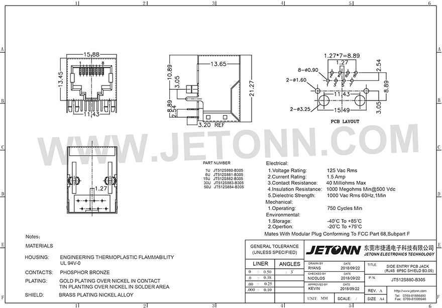 東莞市捷通電子科技有限公司 成立于2018年,是一家專業網絡通訊連接器及防水連接器制造商,主要從事連接器的研發、設計、生產、銷售以及模具開發等服務!