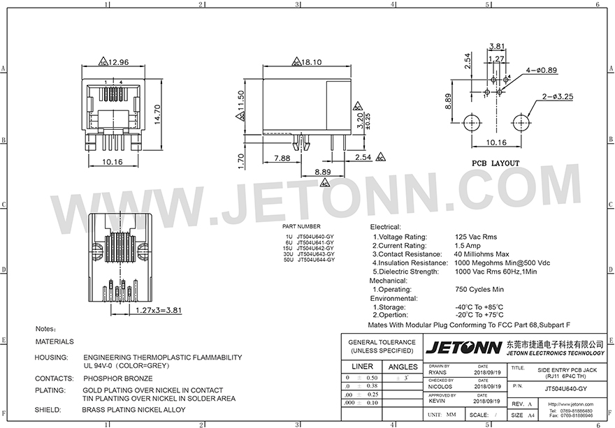 東莞市捷通電子科技有限公司主營RJ12電話插座,RJ11電話母座等其他它精密連接器,我司擁有專業(yè)的生產(chǎn)設(shè)備和技術(shù)型人才,我們堅持匠心品質(zhì),持續(xù)改進(jìn),為客戶提供滿意的產(chǎn)品,歡迎廣大客戶前來咨詢:0769-81886480